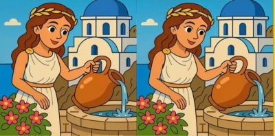 Sunteți pregătiți pentru următoarea provocare? Priviți cu atenție două imagini cu o fată medievală turnând apă dintr-un ulcior într-o grădină. La prima vedere, cele două imagini par identice. Cu toate acestea, ele nu sunt identice: există trei diferențe între ele. Sarcina ta este să găsești 3 diferențe între cele două imagini și să îndeplinești sarcina în 29 de secunde.