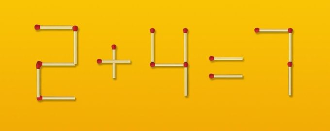 A fost necesar să rearanjăm un chibrit în numărul 2, astfel încât din el să se formeze numărul 3. Apoi obținem exemplul 3+4=7, care este corect.