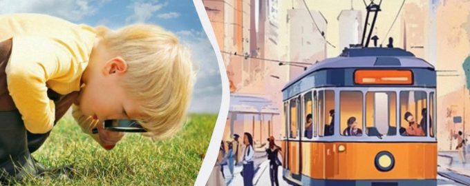 Imaginea arată o stradă aglomerată pe care se plimbă oameni și pe care circulă un tramvai obișnuit. Trebuie să setați un cronometru pentru cinci secunde și să reușiți să găsiți eroarea înainte de expirarea timpului. Sunteți gata?