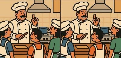 Deci, sunteți pregătiți pentru următoarea provocare? Uită-te cu atenție la două imagini cu un bucătar care ține cursuri de măiestrie culinară în bucătărie. La prima vedere, aceste imagini pot părea la fel, dar dacă cercetezi mai adânc, vei observa 3 diferențe minuscule care sunt inteligent ascunse în imagine. Le poți găsi pe toate în doar 19 secunde?