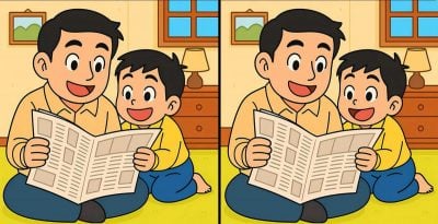 Deci, sunteți pregătiți pentru următoarea provocare? Aruncați o privire la cele două imagini cu un tată și un fiu care citesc ziarul. La prima vedere imaginile pot părea la fel, dar există 3 diferențe ascunse pe ele și sarcina ta este să le găsești cât mai repede posibil. Vei fi capabil să le găsești pe toate în doar 45 de secunde? Încearcă să rezolvi acest puzzle și vezi cât de isteț ești!