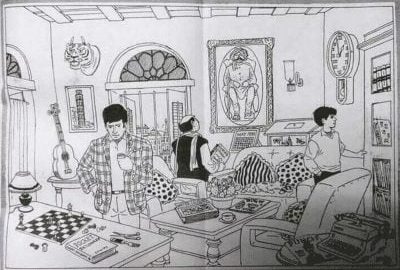 5. Cea mai tânără persoană din imagine este băiatul din dreapta. El se uită la cărți. Dar dacă vă uitați la cămașa lui, veți observa că pe o parte este o mânecă lungă, iar pe cealaltă parte este o mânecă trei sferturi.
