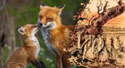 O vulpe este vizibilă în conturul ramurilor de copac / fresherslive