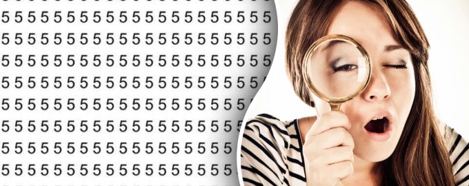 În imagine vedem o mulțime de cifre 5, care sunt aranjate în rânduri și coloane. Dacă vă uitați la această imagine, din primele secunde vi se poate părea că nu există cu siguranță litera S nicăieri. Dar această primă impresie nu ar trebui să fie de încredere – ea este cu siguranță acolo, doar că nu este atât de ușor de observat.