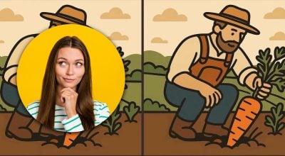 Uitați-vă atent la cele două imagini cu un fermier care culege morcovi.