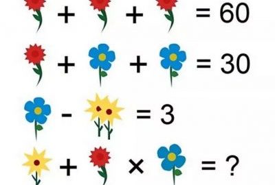 În al treilea rând – o floare albastră minus două flori galbene, care este egală cu trei.