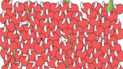 La prima vedere, se pare că toate cireșele au viermi în ele. Dar taki există una care se ascunde la vedere, dar nu are niciunul în ea.