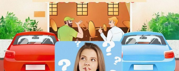 Mai jos veți vedea o imagine cu un restaurant avariat și două mașini. Șoferii se ceartă cu privire la cine a provocat haosul. Fiecare îl acuză pe celălalt că este cel care a provocat accidentul.