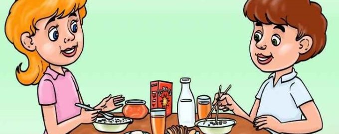 În imagine vedem o fată și un băiat care stau la o masă și mănâncă, în timp ce vorbesc cu pasiune despre ceva.