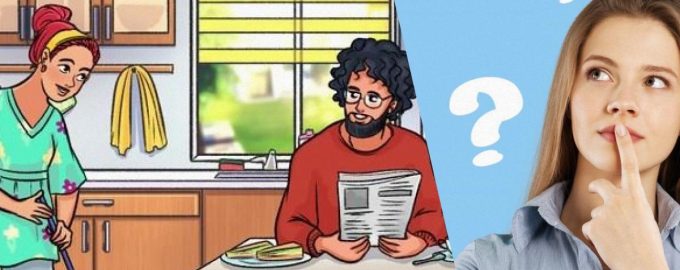 Imaginea arată un cuplu care se bucură de zilor în bucătărie. Bărbatul citește ziarul și bea ceai, în timp ce femeia mătură pe jos. Vi se cere să identificați o eroare ascunsă în această imagine. Trebuie să te uiți cu atenție la imagine înainte de a putea răspunde la întrebarea „Ce este în neregulă cu imaginea?”. Pentru a face jocul și mai interesant, încercați să găsiți răspunsul într-un timp limitat de 11 secunde.