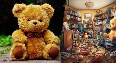 Uită-te atent la imagine. Trebuie să găsiți patru ursuleți de pluș în dezordine, iar unul dintre ei este mai greu de găsit decât ceilalți.
