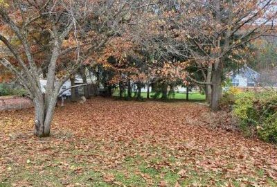Imaginea este un parc, toamna târziu. Există un câine ascuns undeva în parc.