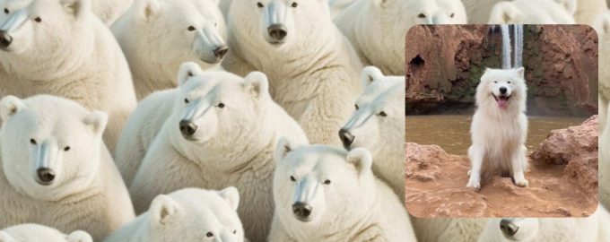 În imaginea de mai jos veți vedea imediat câteva zeci de urși, dar va trebui să vă străduiți să găsiți câinele Samoyed.