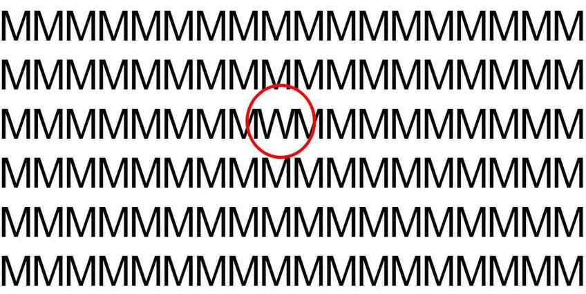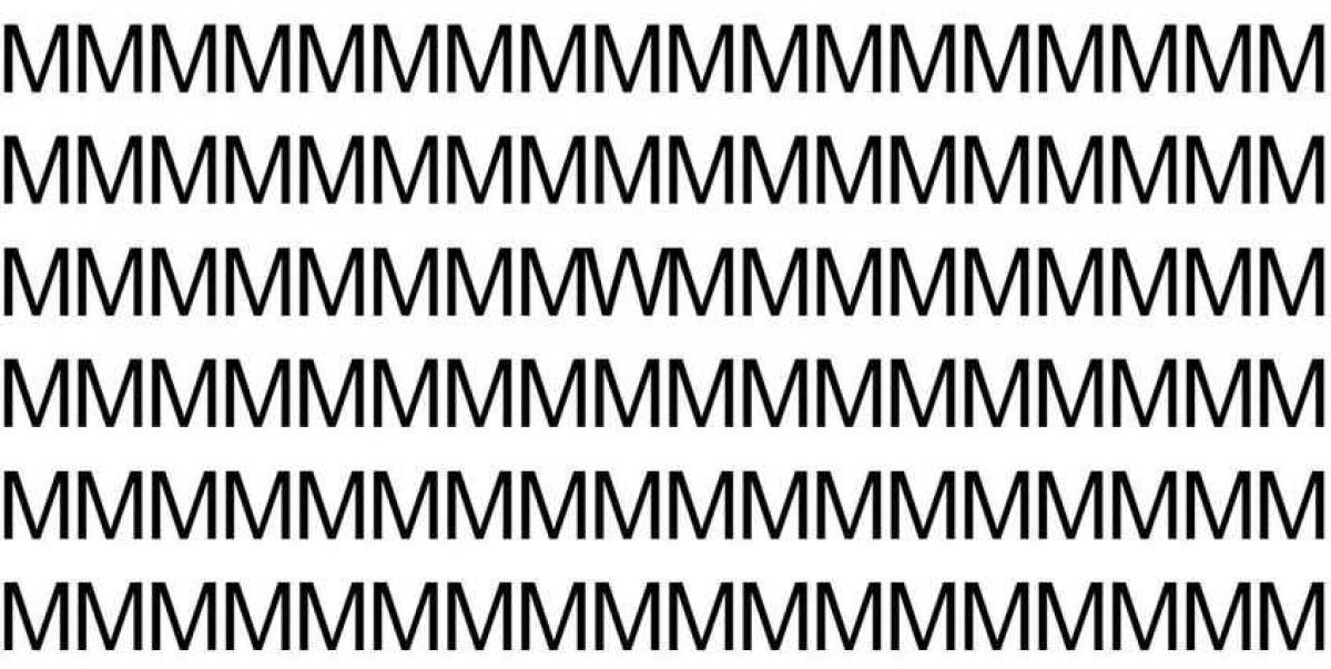 Imaginea este o masă cu o mulțime de M-uri care sunt practic împletite între ele. Undeva printre ele există un W, iar tu trebuie să îl găsești.