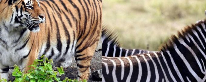 Natura a dăruit acestor prădători colorația de camuflaj, care îi ajută să se ascundă bine printre animalele sălbatice în timp ce vânează prada. Prin urmare, trebuie să fii foarte atent pentru a descoperi tigrul cu dungi printre zebrele cu dungi asemănătoare. Pentru a spori complexitatea puzzle-ului, fotografia prezintă un tigru alb în locul tigrului obișnuit portocaliu și negru.