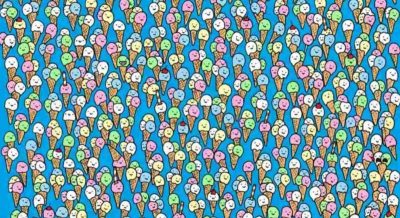 Această imagine arată o mulțime de înghețate de diferite arome și culori. Cu toate acestea, printre aceste dulciuri înghețate este ascunsă o singură acadea, deghizată inteligent pentru a înșela ochiul neavizat.