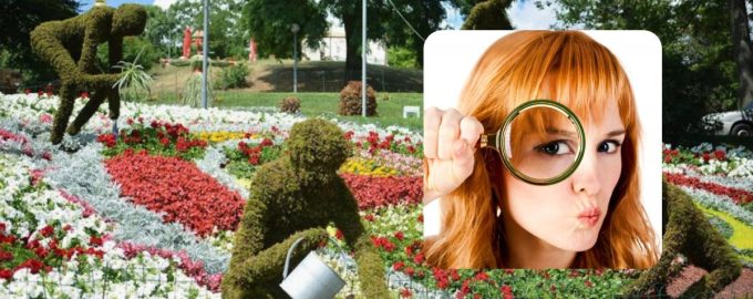 În fotografia de mai jos puteți vedea straturi de flori viu colorate în parc. În plus față de florile obișnuite care creează un model original, fotografia prezintă sculpturi verzi ale „grădinarilor”. Încercați să găsiți o vrabie mică printre ele.