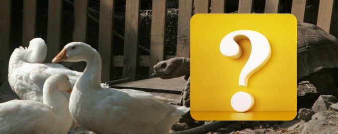 Animalul de companie s-a ascuns în curte pentru a privi în liniște gâștele și o broască țestoasă mare. Poți vedea că păsările și reptila încă nu l-au observat. Tu vei fi în stare?