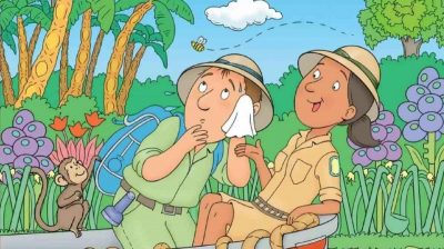 Imaginea este a unui bărbat și a unei femei călători. Ei se află pe o insulă. O maimuță stă lângă ei. Aparent, bărbatul este speriat de o albină, iar femeia îi urmărește comportamentul. Maimuța pare să se uite unde se uită bărbatul. Sarcina ta este să găsești lămâia aici.