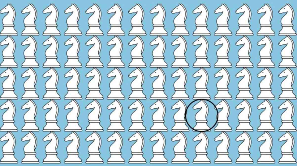 În imagine sunt mai multe piese de șah „cavaler”. Sarcina ta este să găsești o piesă care este diferită de toate acestea.