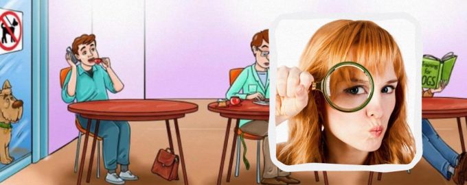 Acesta este exact tipul de puzzle pe care vă propunem să-l rezolvați astăzi. Uitați-vă cu atenție la ilustrația de mai jos. Trebuie să vă uitați la fiecare vizitator al localului și să aflați care dintre ei este proprietarul câinelui care stă în fața ferestrei. Totuși, țineți cont de faptul că aveți la dispoziție doar 5 secunde pentru această sarcină.