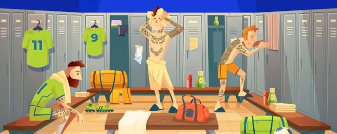 Acum uită-te la imaginea de mai sus. Veți vedea trei persoane în vestiar. Se pare că tocmai au terminat un meci de fotbal. Unul dintre bărbații din imagine este încă în uniformă, al doilea se schimbă, iar al treilea tocmai a ieșit de la duș și s-a înfășurat într-un prosop.