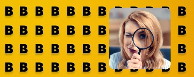 În imaginea de mai jos puteți vedea multe litere „B”, care sunt repetate în 12 coloane. Trebuie să setați un cronometru pentru 9 secunde și să încercați să găsiți „litera impostor”.