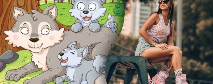 În imagine vedem o mamă lup cu doi pui de lup. La prima vedere poate părea că nu există patine cu rotile în imagine, dar nu vă încredeți în prima impresie.
