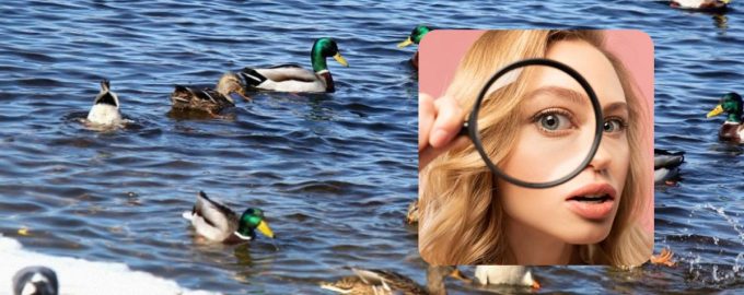 Astăzi vă propunem să exersați pe o fotografie a unui iaz în care înoată un număr mare de rațe. O rață foarte neobișnuită este ascunsă printre ele – trebuie să o găsiți în mai puțin de 7 secunde.