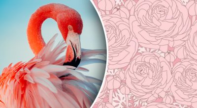 Flamingo poate fi văzut în partea de jos a imaginii. Prezența multor flori roz pe un fundal roz face dificilă recunoașterea păsării, deoarece și aceasta este de culoare roz. În imaginea de mai jos, flamingo este încercuit.