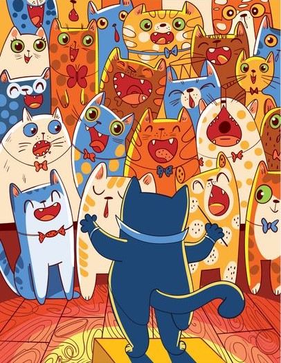 Undeva printre pisicile care cântă cu veselie, se ascunde un pește. Dacă poți găsi peștele ascuns, ești în primii 3% dintre oamenii atenți.
