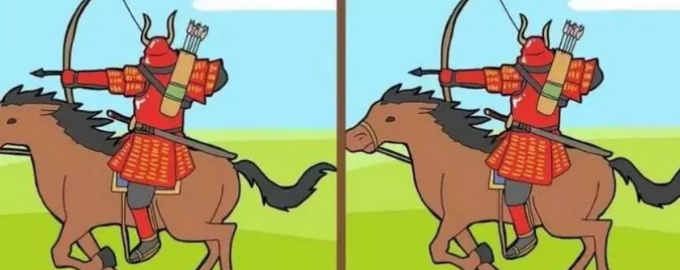 În imaginea de mai sus vezi un războinic pe un cal cu un arc și săgeți. La prima vedere imaginile par identice, dar există de fapt trei mici diferențe între ele. Trebuie să le găsești în doar 18 secunde sau mai puțin.