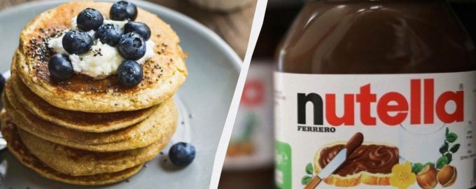 Puteți îmbunătăți clătitele prin adăugarea unui strat ascuns de pastă de ciocolată cu alune.