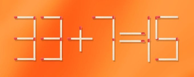 Să analizăm împreună imaginea. Putem înlocui semnul „+” cu un semn „-„, dar 33-7 nu este egal cu 15. Așa că mutăm un chibrit de la semnul „+” la numărul 15.