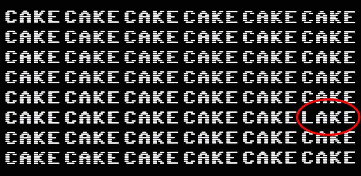Pe imagine vedem un număr mare de cuvinte englezești cake, care se traduc prin „tort, tort”. Dar undeva printre ele există un alt cuvânt care nu ar trebui să fie pe această listă.