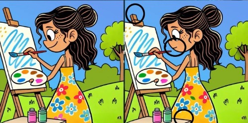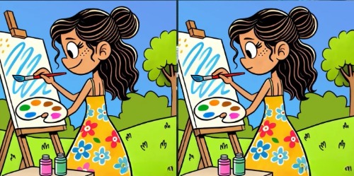 În următorul puzzle trebuie să găsești trei diferențe între imaginile care prezintă o fată care face un desen, notează jagranjosh.